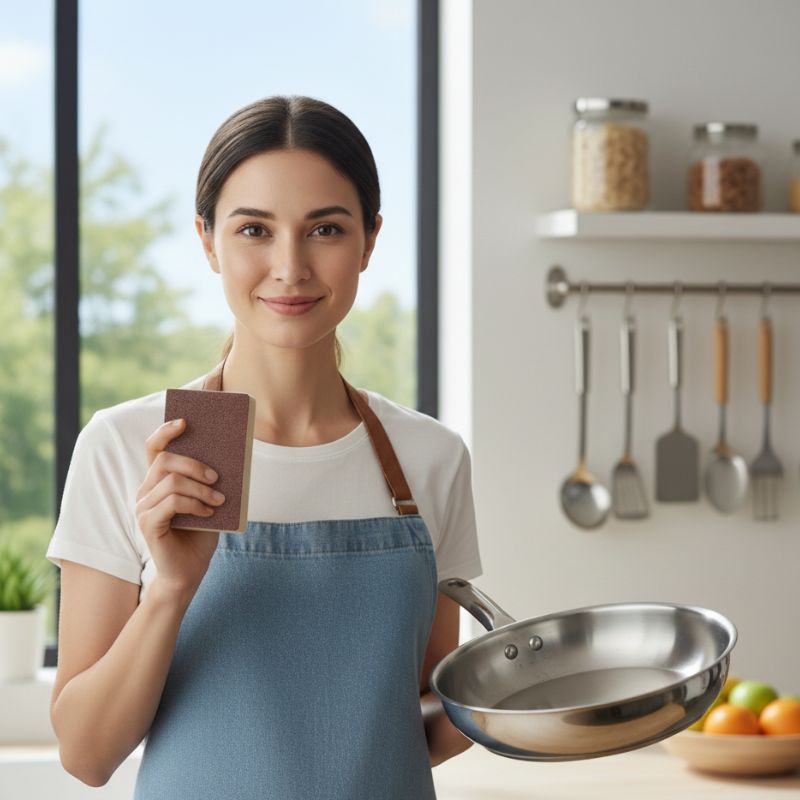Koliko god ih ribali i čistili – pravi efekti izostaju. Obični sunđeri se brzo istroše, abrazivi oštete površine, a vi opet ostajete nezadovoljni jer vaši tiganji i šerpe djeluju staro i zapušteno.