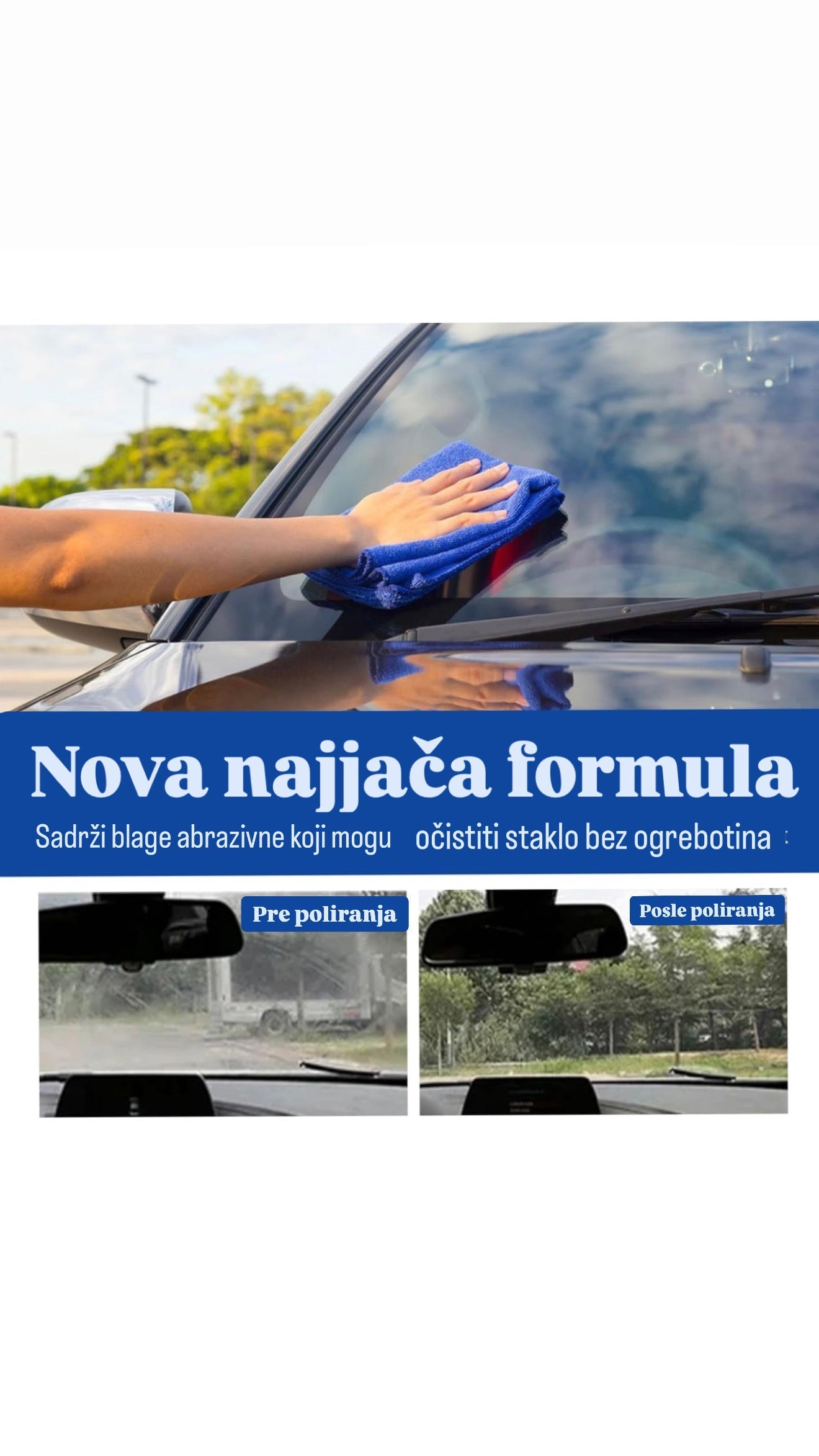 MULTIFUNKCIONALAN: Ovo sredstvo pogodno je i za ostale staklene površine poput prozora, ogledala ili tuš kabine, pa čak i za ogrebotine i popucalosti na staklima. Takodje, povećava jačinu i istrajnost stakla.